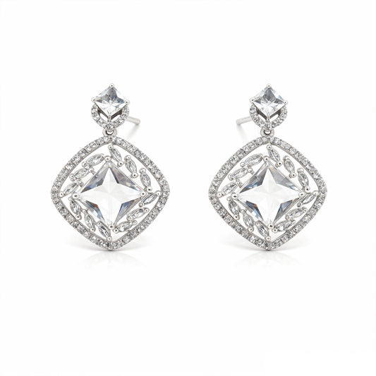 Rhodium Plated Silver Zirconia Tear drop Chic Earring