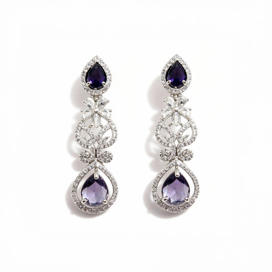 Shyneva Rhodium Plated AD Stone Earrings for Women | Elegant Silver Jewellery 1