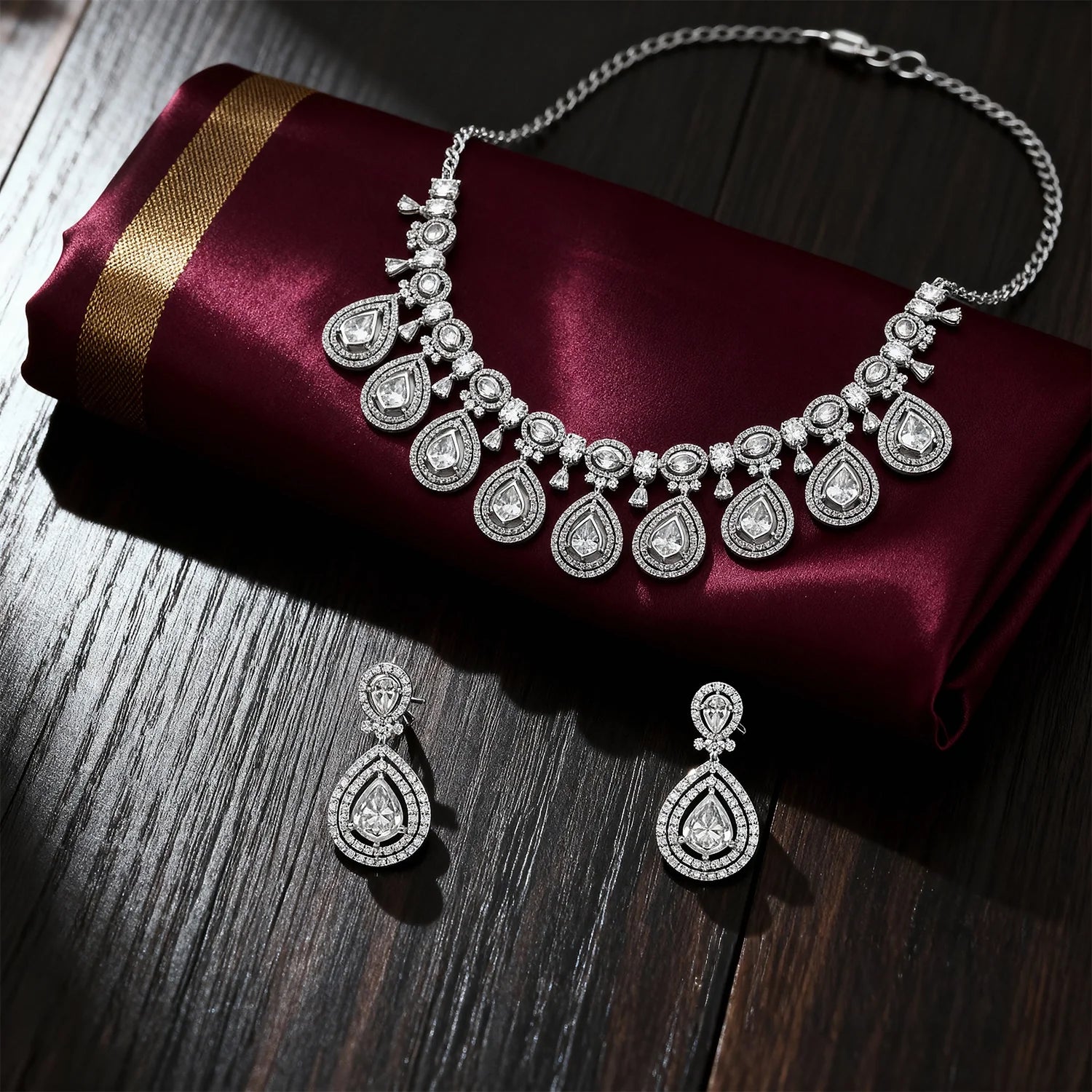 Shyneva Chic Glam AD Necklace Set | Rhodium Plated Silver Jewellery