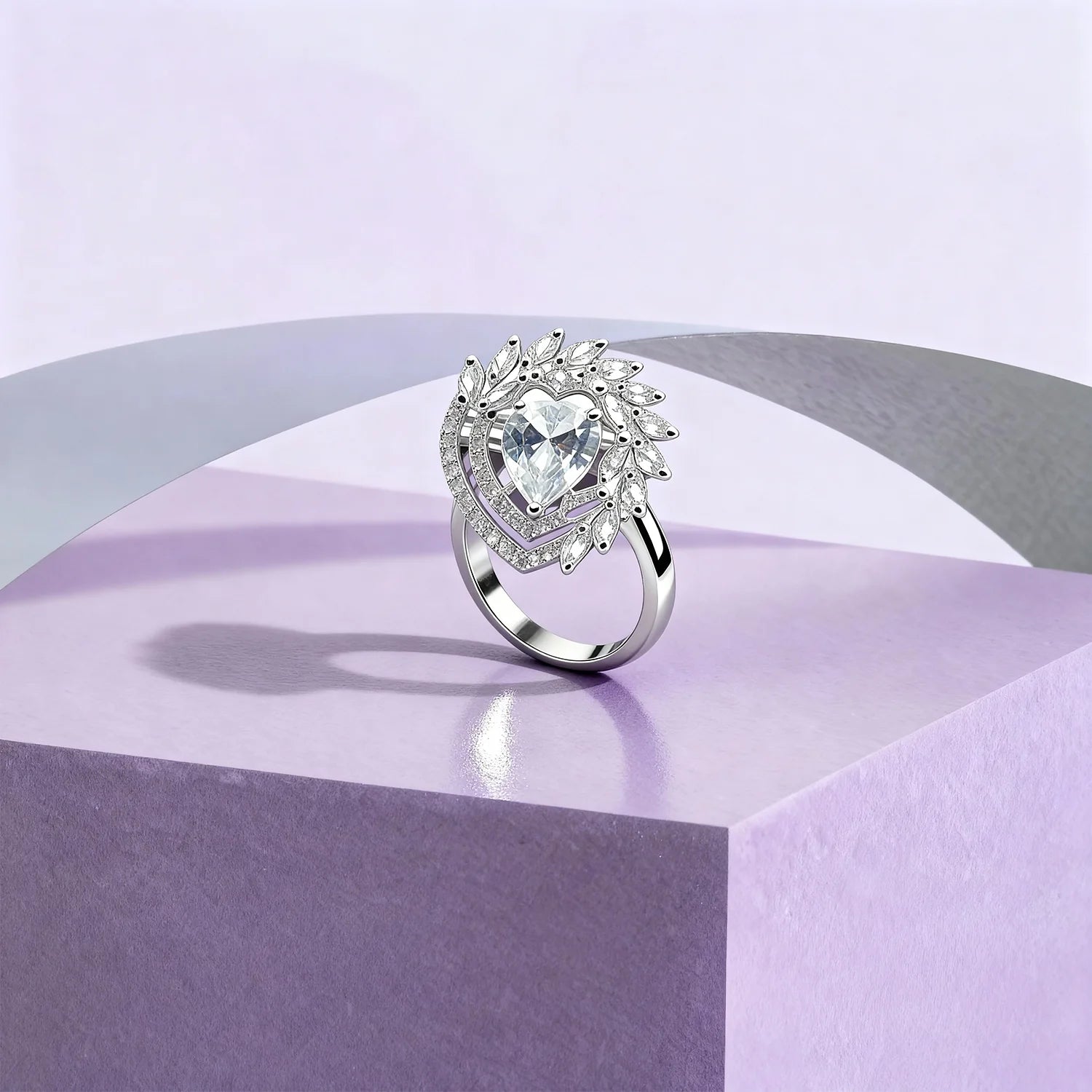 Shyneva Luxe Petal Radiance Ring rhodium plated silver jewellery | Adjustable Ring For Women